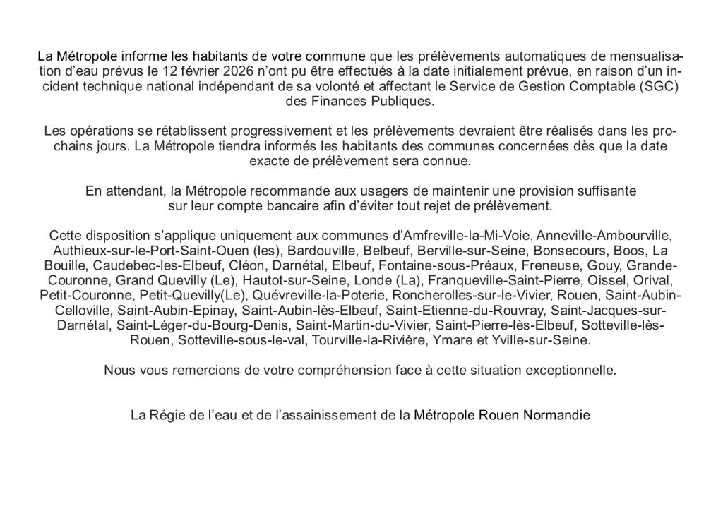 INFORMATION IMPORTANTE EAU METROPOLE ROUEN NORMANDIE