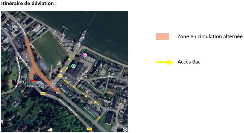 sur la même période lorsque l’accès sera réduit à hauteur de l’arrêt de bus « Route du bac ».